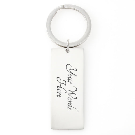 Each message is laser etched by our skilled artisans to ensure that it will never fade away, keeping your important message close to your loved one forever. We offer Domestic and Global Shipping! Product Details: Keyring Size: 1 inch in diameter Pendant Size: 2" x 0.8" (5cm x 2 cm). Laser engraved for maximum durability Material: Polished Stainless Steel